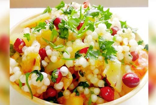 " A light dish made with sago or sabudana, spiced lightly. It is mostly eaten during the festival of Navaratri or Janmashtami when people are fasting. Sabudana Khichdi is one of the main fasting dish from western India, especially from the regions of Maharashtra, Gujarat and Rajasthan."